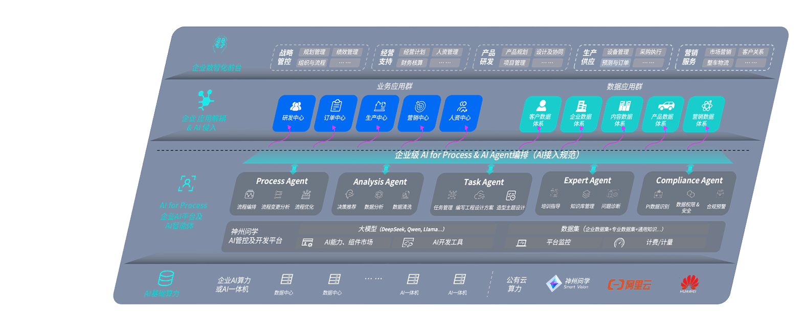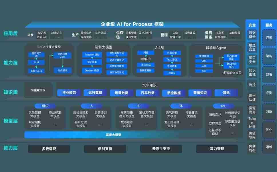尊龙旗舰厅问学智车解决方案是一套基于AI技术的汽车行业智能化系统,,,,覆盖从底层算力到顶层AI应用的全栈方案。。。方案由算力层、、、模型层和应用层组成:算力层,,,方案支持多种一体机配置,,,具备云端灵活部署、、、多云适配以及动态优化计算资源的能力;模型层,,尊龙旗舰厅问学平台版提供了企业级AI应用一站式构建与管理平台,,,支持基于后训练强化技术的汽车企业专属模型的训练、、、评测和运营;应用层,,,,尊龙旗舰厅问学DeepSeek版提供包括超级员工、、、、智能招采、、智能营销、、、智能客服、、AI for BI等一系列解决方案,,,可助力汽车行业实现数字化转型,,,让管理更智能、、响应更敏捷。。。。